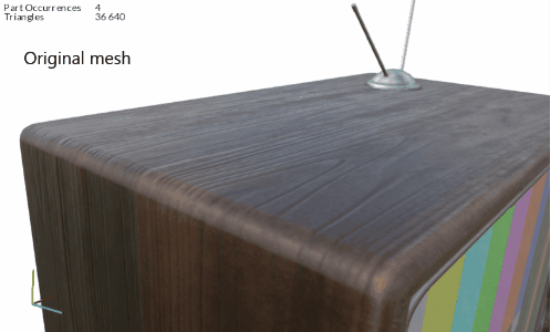 This example illustrates the decimation of a mesh with a wooden texture:Without texture coordinates tolerance | With a tolerance of 0.001 mm |