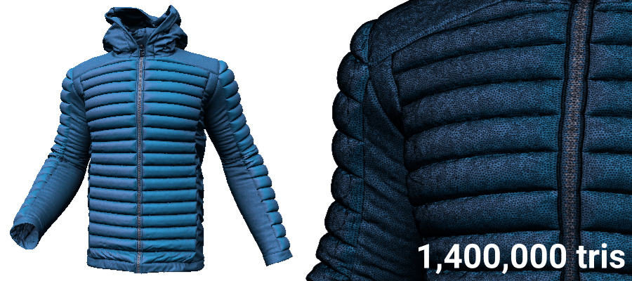 To limit memory usage, set the minimum polygon count above which to iterate decimation. This parameter is particularly useful for large models that have several million polygons, such as industrial models. These models are memory-intensive and require iterative decimation. Set this threshold according to your computer memory capacity. As a rule of thumb, count 5 GB of RAM for one million polygons.Examples