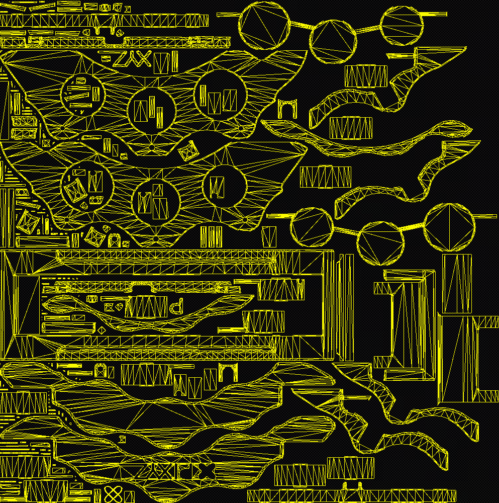 This example shows an entire lightmap, where each highlighted square represents one repacked mesh: