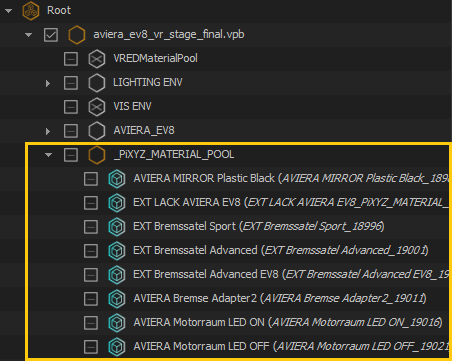 VRED models usually are pretty advanced scenes including a lot of manual work and knowledge. Those scenes can be imported within Pixyz for seamless usage in various virtual experiences. made with other realtime engines, such as Unity. Importing a .vpb file in Pixyz requires Autodesk VRED Pro or Design to be installed (with a valid license) on the same computer on which Pixyz is running.