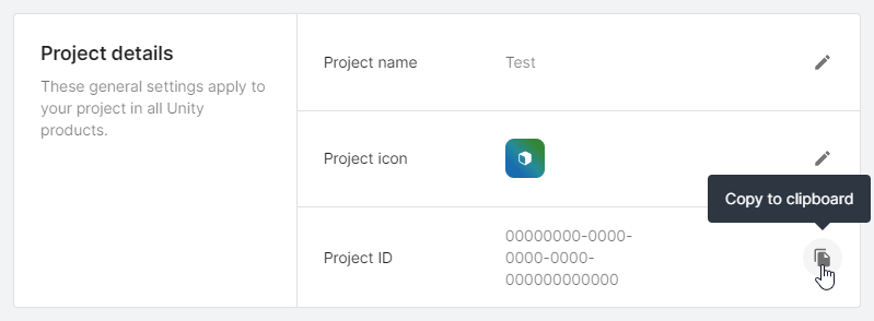 - Paste the copied value into the Unity Project ID field.
