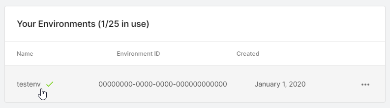 In the Unity Dashboard, go to Environments > Your Environments and select the Environment you want to use and copy its Name. This is the identifier we use for the environment.