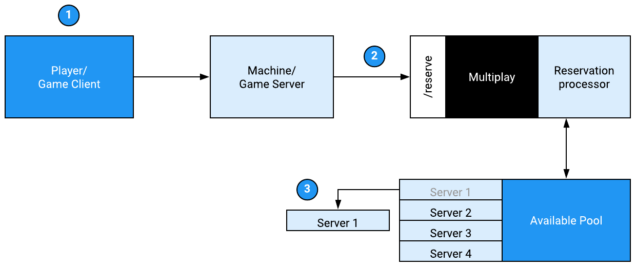 - The game server calls the Reserve API endpoint to mark itself as reserved.