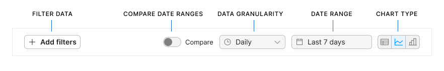 Choose how frequently your data points appear using the granularity dropdown (clock icon) in the menu bar. You can choose from the following granularity settings:- Hourly