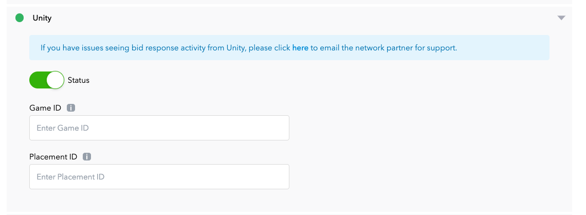 To get started using Unity in-app bidding with AppLovin MAX mediation, complete the following steps to connect the AppLovin MAX Dashboard and the Unity Ads Monetization dashboard: