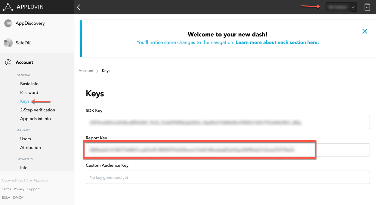 Step 2. Retrieve Your AppLovin SDK and Report Keys