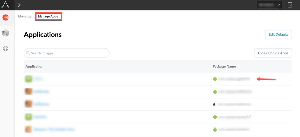 In the AppLovin Admin, go to Manage Apps and select the specific app you want to configure.