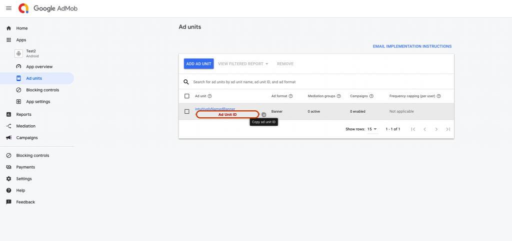 - Ad Unit ID To retrieve your Ad Unit ID, go to 'Apps' tab on the left side bar on Admob's platform and click on 'Ad Units'. You will then see the application's ad units, as well as the Ad Unit ID.