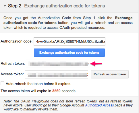 - You should then receive the Authorization Code from Step 1 and will be able to click the Exchange authorization code for tokens button. Then you will get a Refresh token as well as an Access Token.