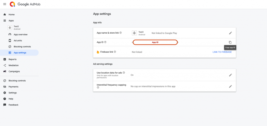 - App ID To retrieve your App ID, go to 'Apps' tab on the left side bar on Admob's platform and click on 'App Settings'. You will then see the application's settings, as well as the App ID.