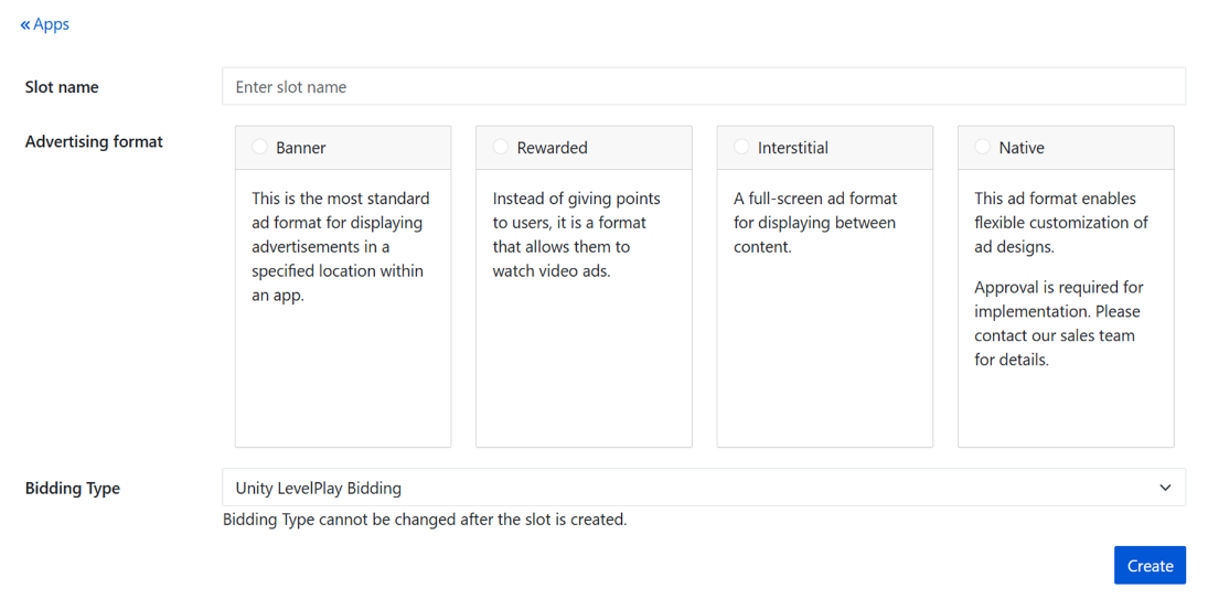 Bidding Type: Select Unity LevelPlay Bidding.