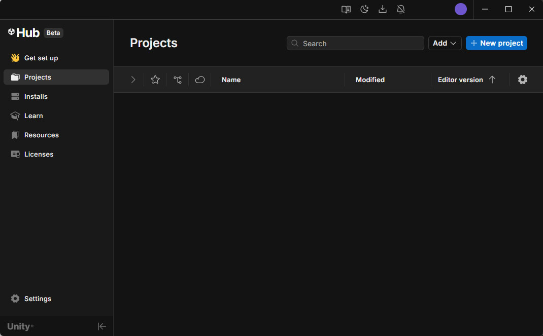 - Select Create project. The Hub creates the project, adds it to your Projects list, and opens it in the Unity Editor.