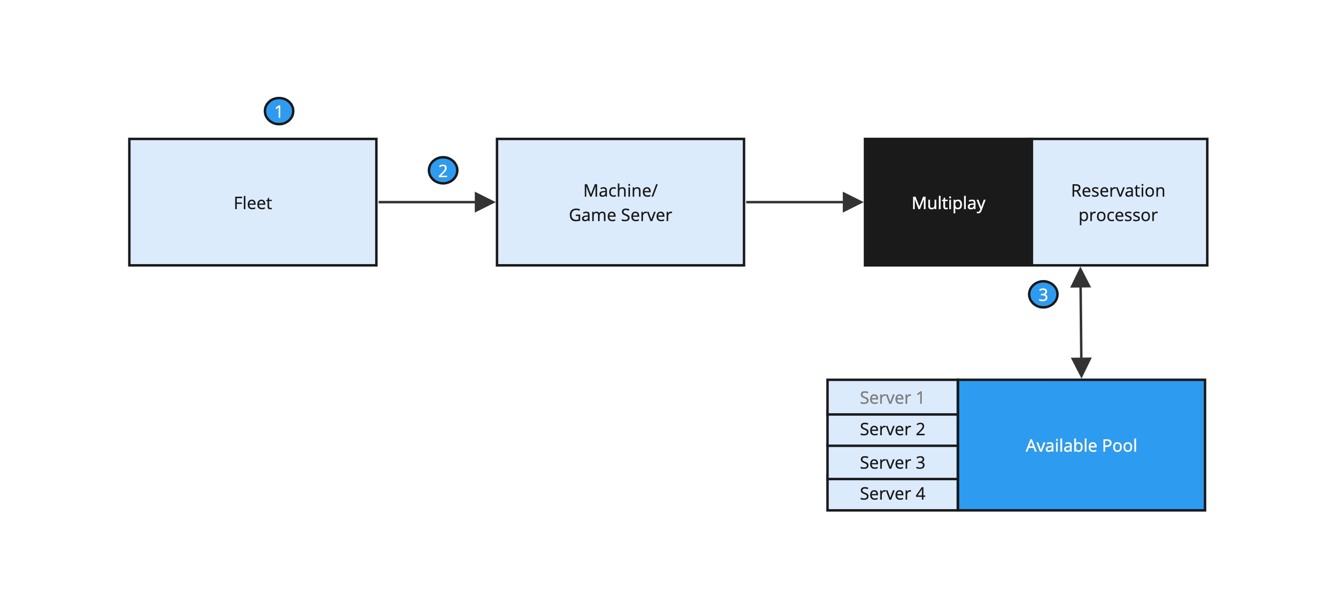A reservation is a request to the Multiplay Hosting API to reserve a specific server for a game session. Reservation requests are part of the reservation system Multiplay Hosting offers. The reservation system works the best for games that don’t use a matchmaker to group players together for a game session but use a server-select flow. A server-select flow is a method of connecting game clients to a game server where the player selects the specific game server they want to join.