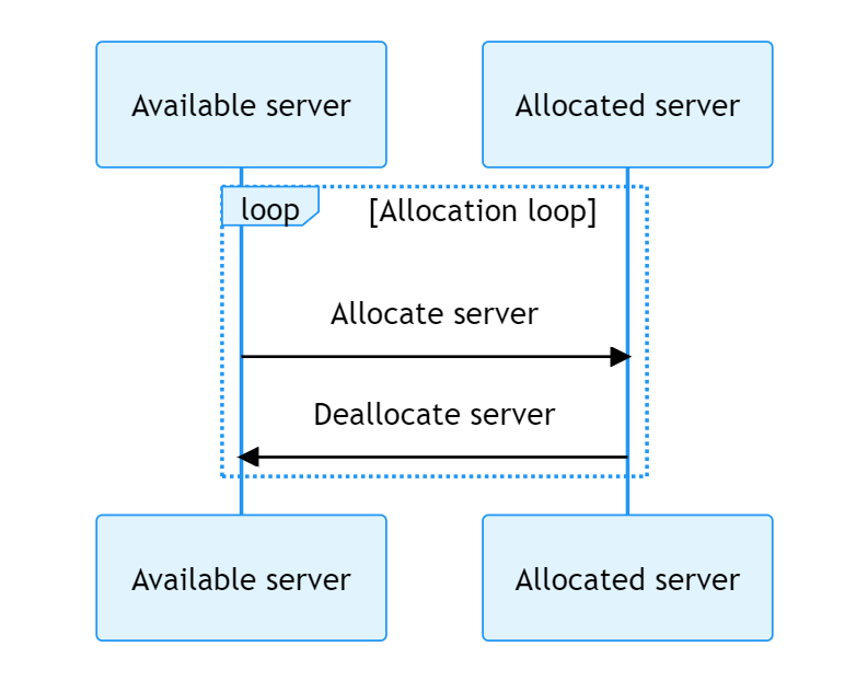 Before the allocation lifecycle begins, the state of a server slot is called available. The available state isn't part of the allocation lifecycles, but it's worth mentioning because it's the default state of the server slot Available server slots contain a combination of stopped and started build executables.Allocate