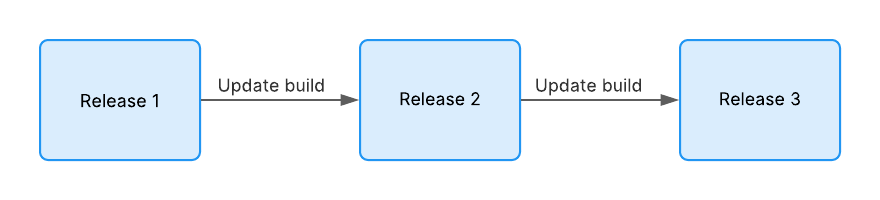 A flowchart showing the naming convention of releases, starting with Release 1 then Release 2 then Release 3, after each successive build update.