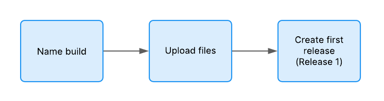 A flowchart showing the stages of creating your first release, from naming the build to uploading the files then finally creating the release.