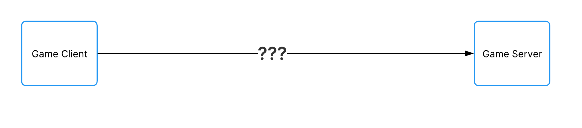 A diagram showing the technical uncertainty that exists when trying to connect a game client to a game server.