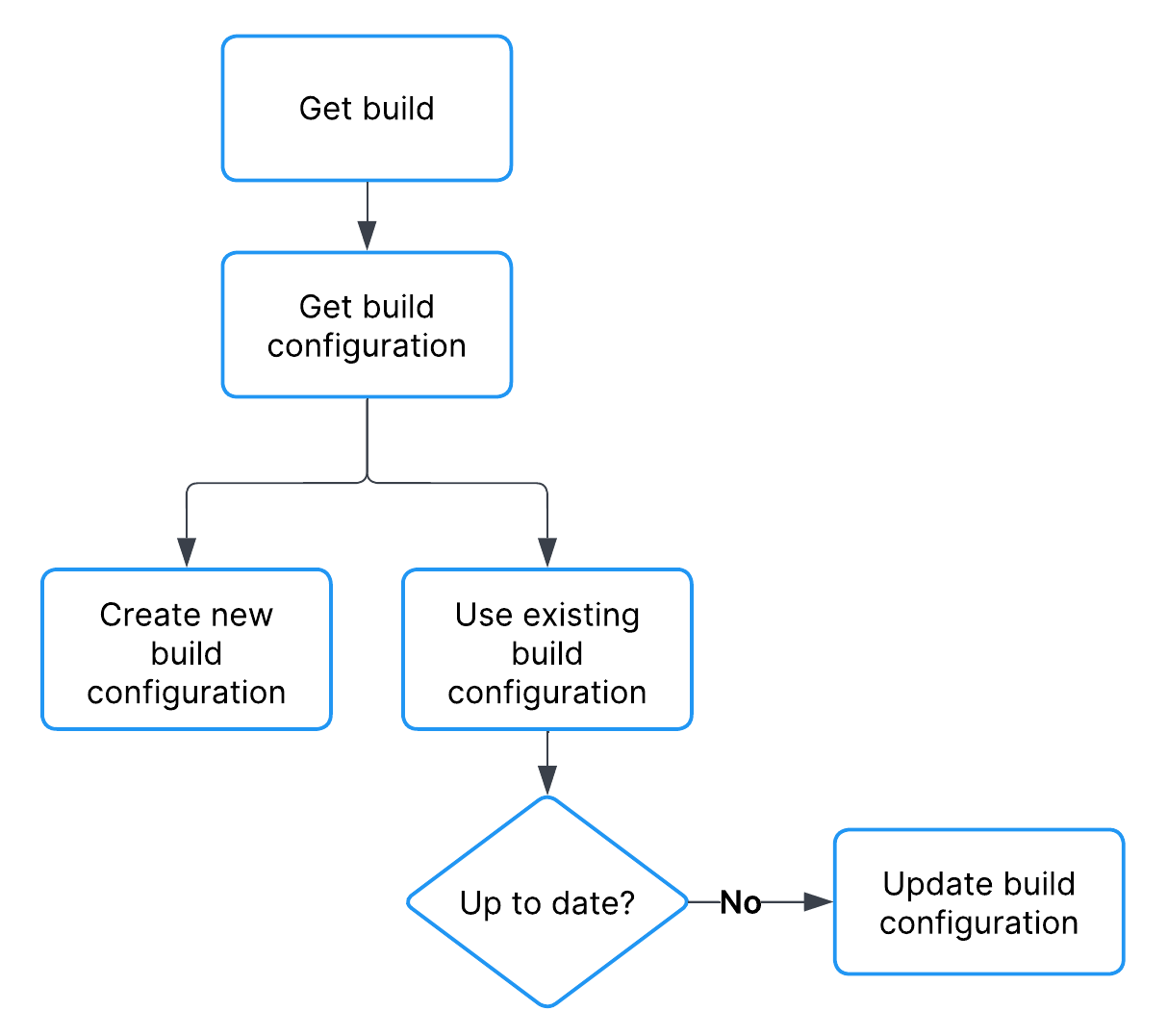 The process for getting a build configuration varies depending on whether you want to use an existing build configuration or create a new one. If you opt to use an existing build configuration but want to update it, refer to Update a build configuration.Get an existing build configuration by name