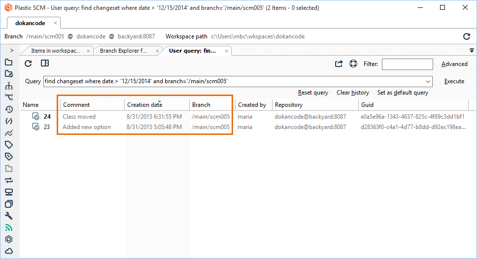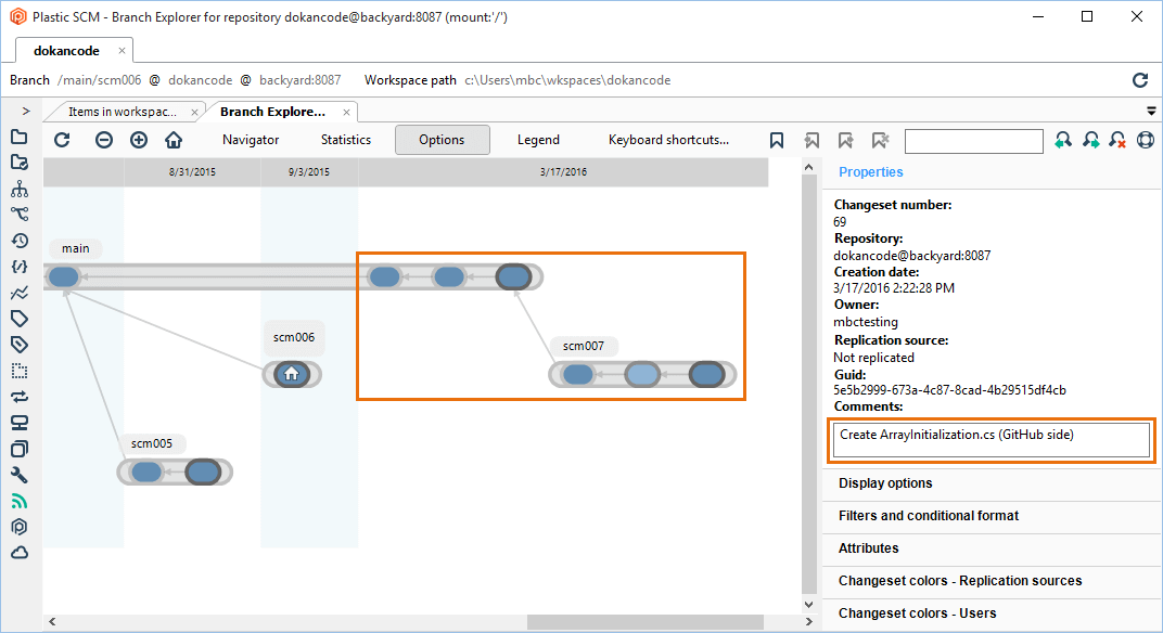 - Refresh the Branch Explorer and you'll be able to render the just imported Git changesets in a typical UVCS way: