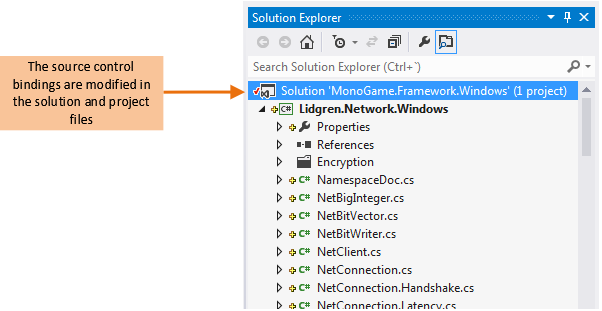 Before using UVCS inside Visual Studio, the solution has to be added to UVCS. Adding the solution to UVCS binds them together and this binding is stored inside the solution and project files.Adding a solution for the first time