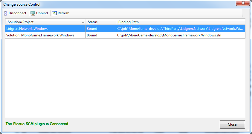 This same dialog also lets you remove the bindings from the solution so it is no longer connected to UVCS, as well as bind it back if needed. To unbind the solution, select all the items in the table and click theUnbindConfiguring UVCS options