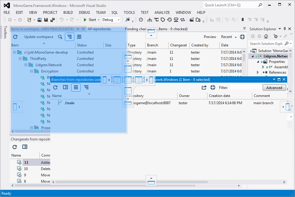 The Workspace explorer view is the same as the Workspace Explorer in the UVCS GUI. Normally items are handled in Visual Studio through the Solution Explorer, but this view can be better suited for files in the workspace that are not contained in the Visual Studio solution.Pending changes on workspace