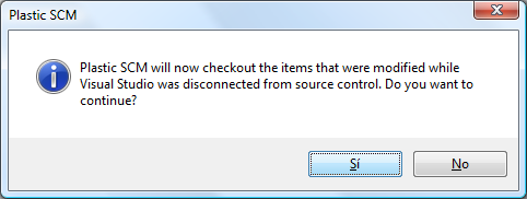 When a solution has been bound to UVCS, the plug-in will try to connect to the UVCS server to perform each operation (checkout, checkin, diff, annotate, etc). If the server is not available for some reason, most of the operations will fail, after some time spent waiting for the network timeout. It is possible to set the UVCS plug-in into "offline mode", so that the operations that require the server are not available (like annotate or diff), but still it is possible to make changes in the code. Later, when the connection with the server is back, those changes can be sent to it by setting the plug-in online again. To set the solution offline, go to:File > Plastic SCM Source Control > Change Source Control