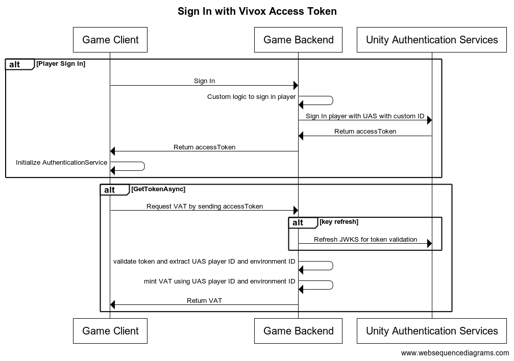 - The Vivox SDK will request a VAT from the backend whenever one is needed using a custom token provider implementation.