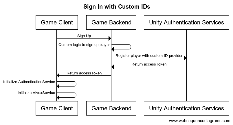 - The game client then initializes the authentication service and the Vivox service to finish signing in the player.