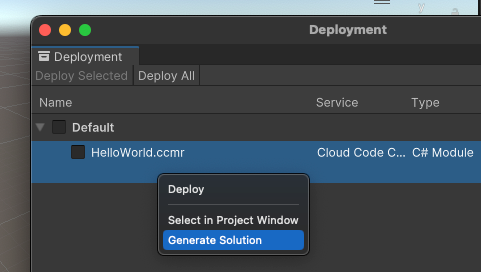 Create and deploy Cloud Code modules using the Unity Editor and Deployment package.