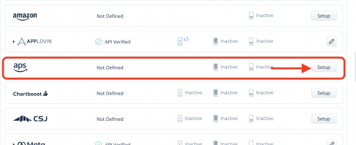 - Select APS from the list of ad networks and select Setup