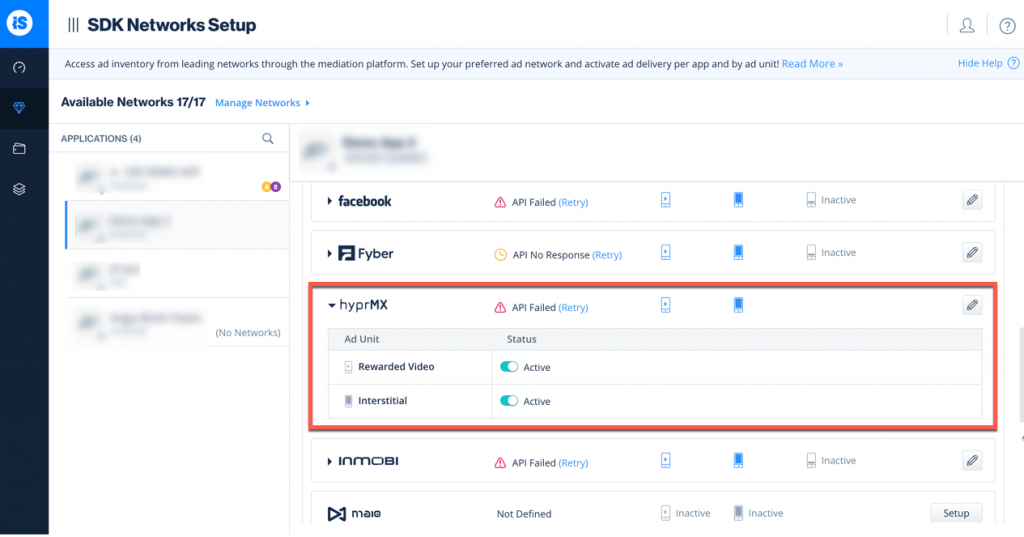 - You will then see HyprMX as Active for Mediation on the Setup dashboard.