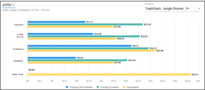 - 트래킹을 활성화한 사용자와 활성화하지 않은 사용자의 eCPM을 비교합니다.