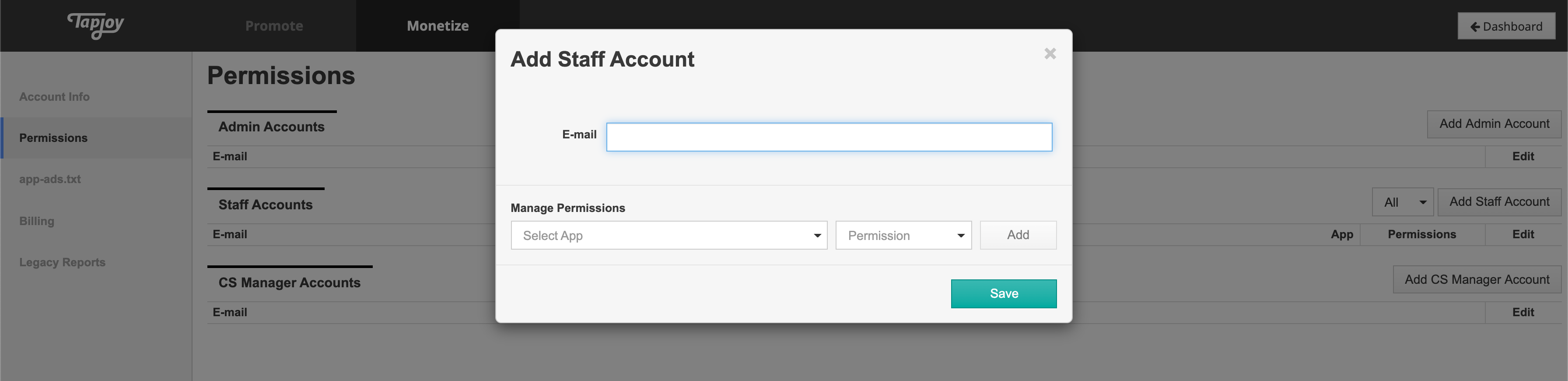 탭조이 Monetization 대시보드에서 사용자 역할과 권한을 할당하고 관리하여 개발 팀의 앱에 대한 액세스를 제어하고 앱 관리 작업을 구성합니다.