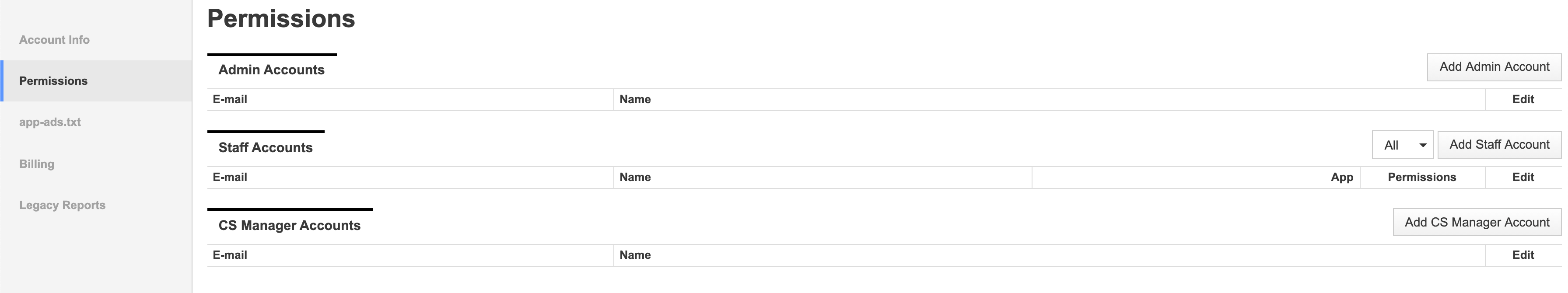 - 그러면 모든 Admin Accounts와 Staff Accounts를 볼 수 있는 Permissions 화면이 표시됩니다.