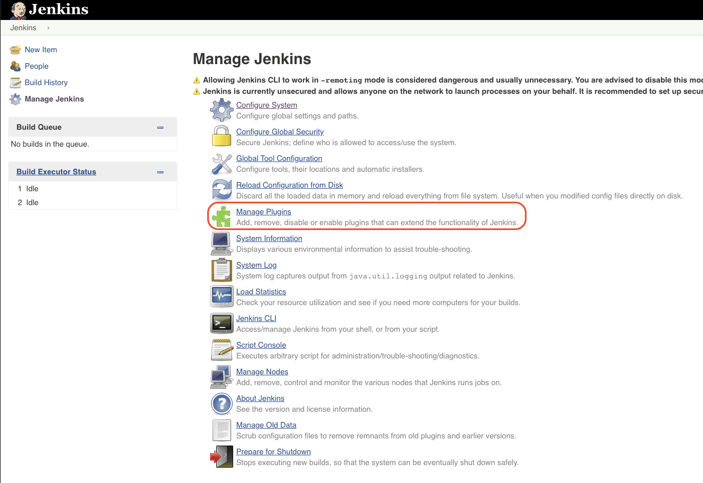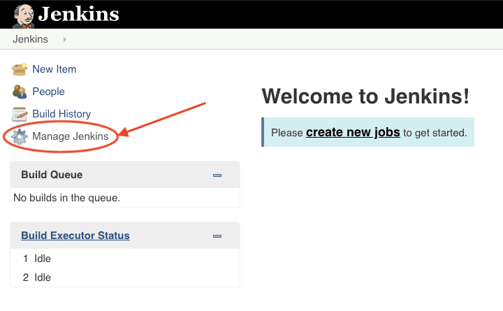 Navigate to your Jenkins instance and open the "Manage Jenkins" section.