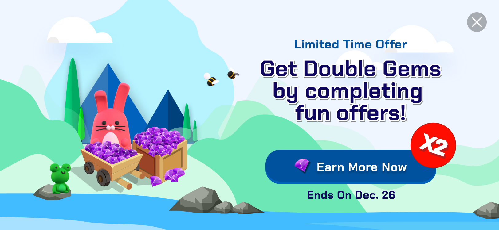 Display in-app messages that direct users to your offerwall with either Message to Earn (M2E) or by deeplinking your internal messaging. The following image is an example of M2E in-app messaging: