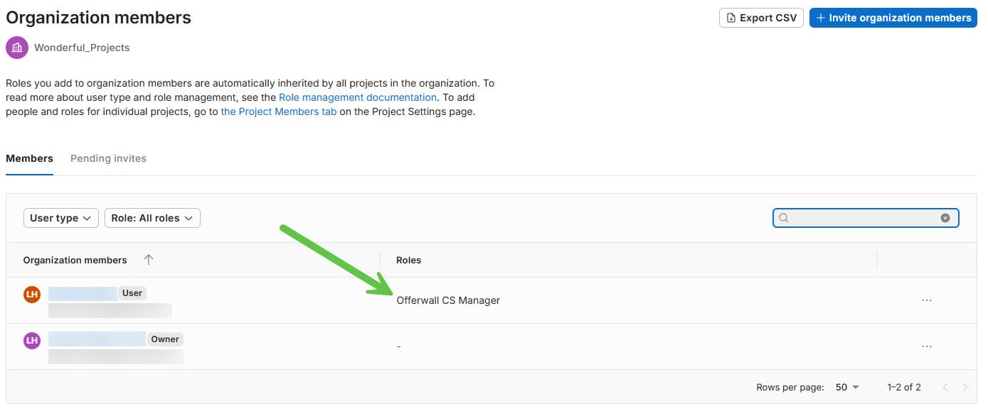 In addition to being assigned the User user type, members who previously had the CS-Manager account type are also assigned the Offerwall CS-Manager role. The following image shows a member with the User user type and the Offerwall CS-Manager role.
