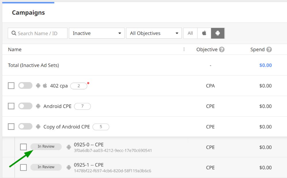 - From the left menu, select Campaigns and find the CPE campaign to add ad sets to.