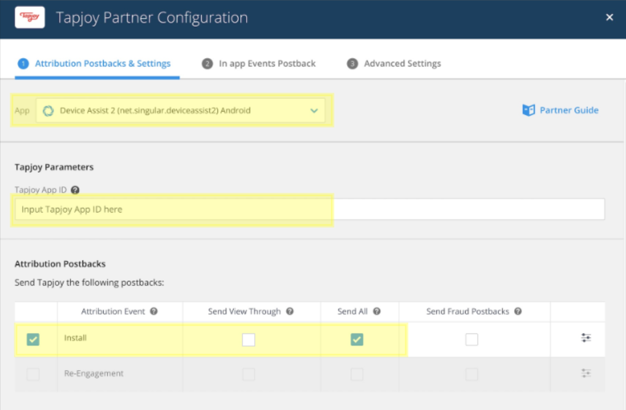 Tapjoy App ID - Under , check the 'Install' Attribution Event.