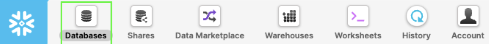 单击 Create Database(创建数据库) ;随即将创建一个具有所选名称的数据库。或者,可以在 Snowflake 中通过以下 SQL 命令执行此操作: