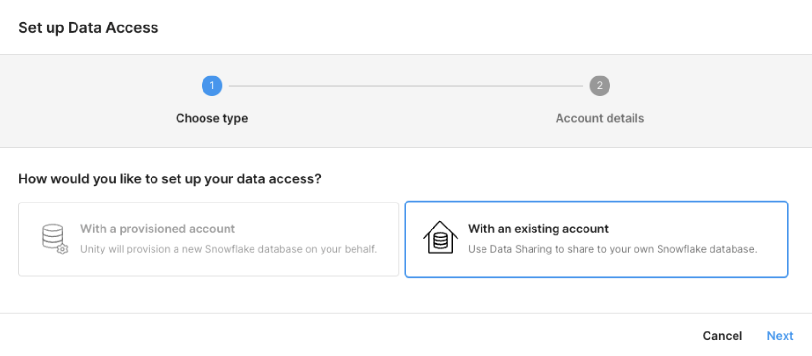 与 Unity 无关的 Snowflake 帐户