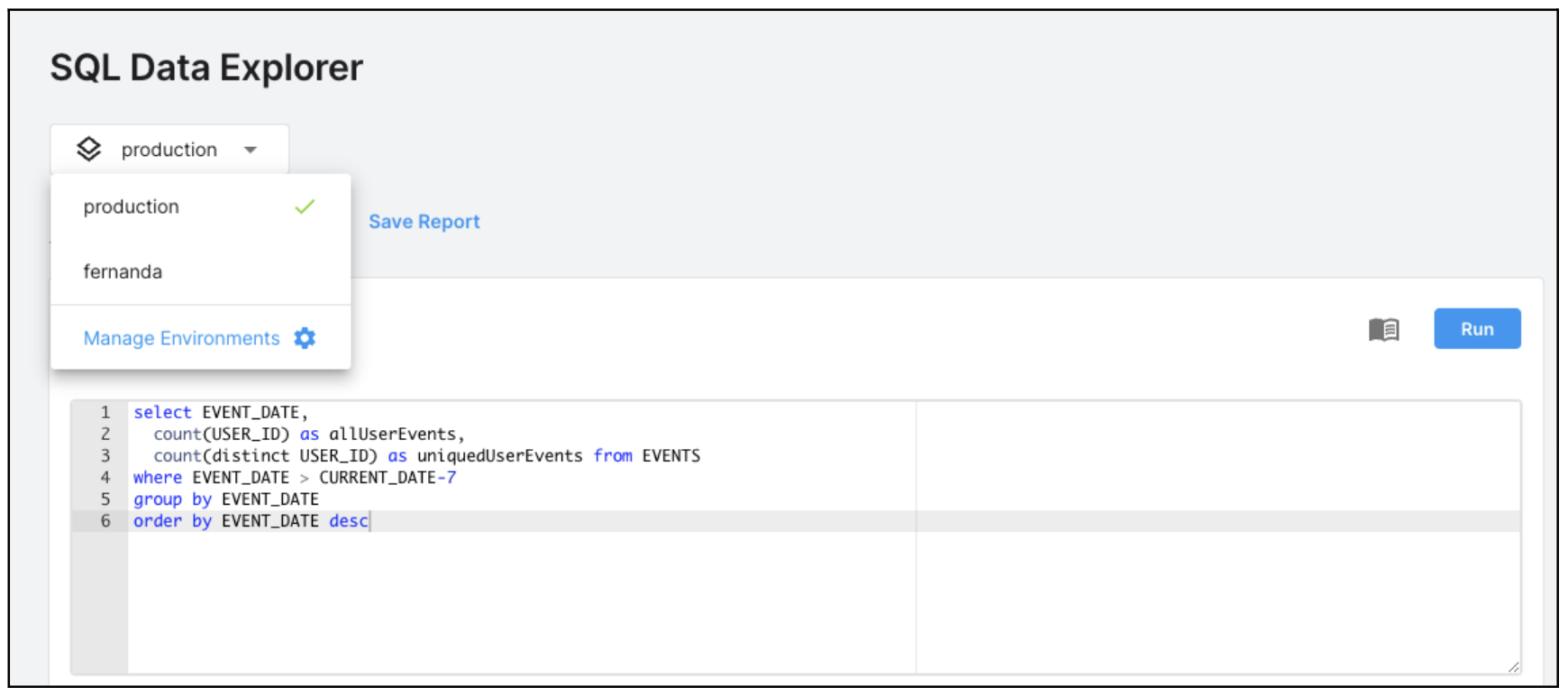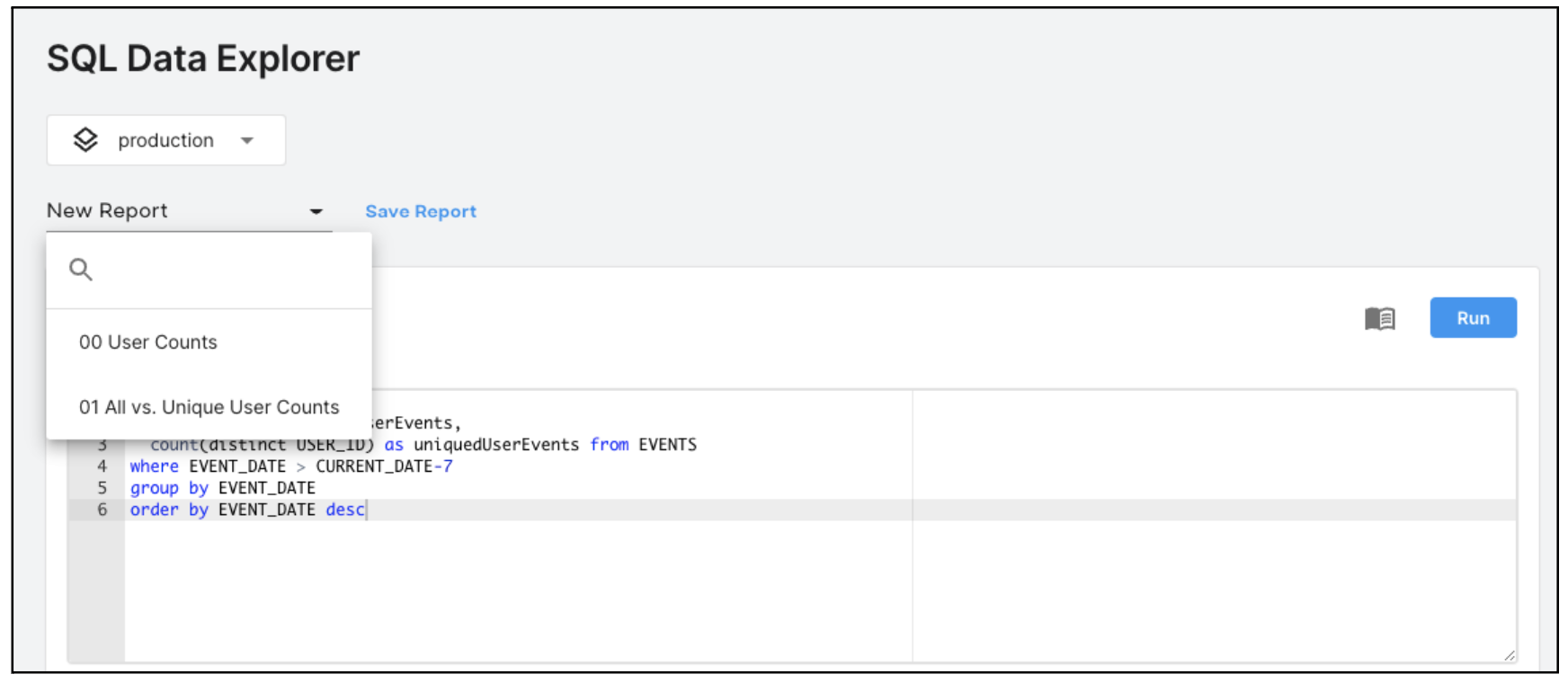 Unity Analytics SQL Data Explorer(SQL 数据资源管理器) Write custom SQL queries to analyze your Analytics data and create visualizations.