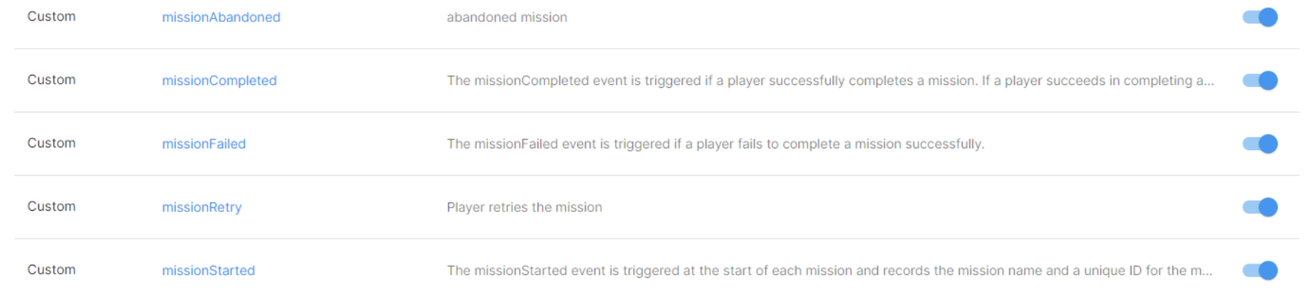 在此示例中,我们使用自定义事件通过 missonID 参数来跟踪玩家对任务的参与度,从而查看任务失败率。