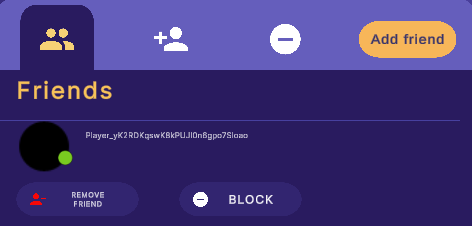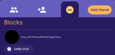 如果玩家已将您屏蔽,他们会对您显示为离线状态。如果您屏蔽了玩家,他们将出现在您的屏蔽列表中。 屏蔽其他玩家的方法有两种:从您的好友列表和好友请求收件箱中屏蔽。 从好友列表中屏蔽玩家:- 选择 **Friend List(好友列表)**按钮。