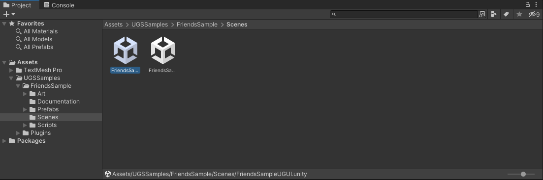 双击 FriendsSampleUGUI 场景或 FriendsSampleUIToolkit 场景。\