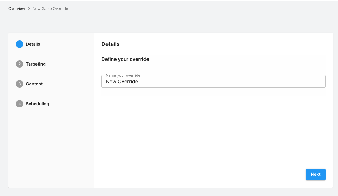 选择 Create Override(创建覆盖)。添加名称并选择 Next(下一步)。