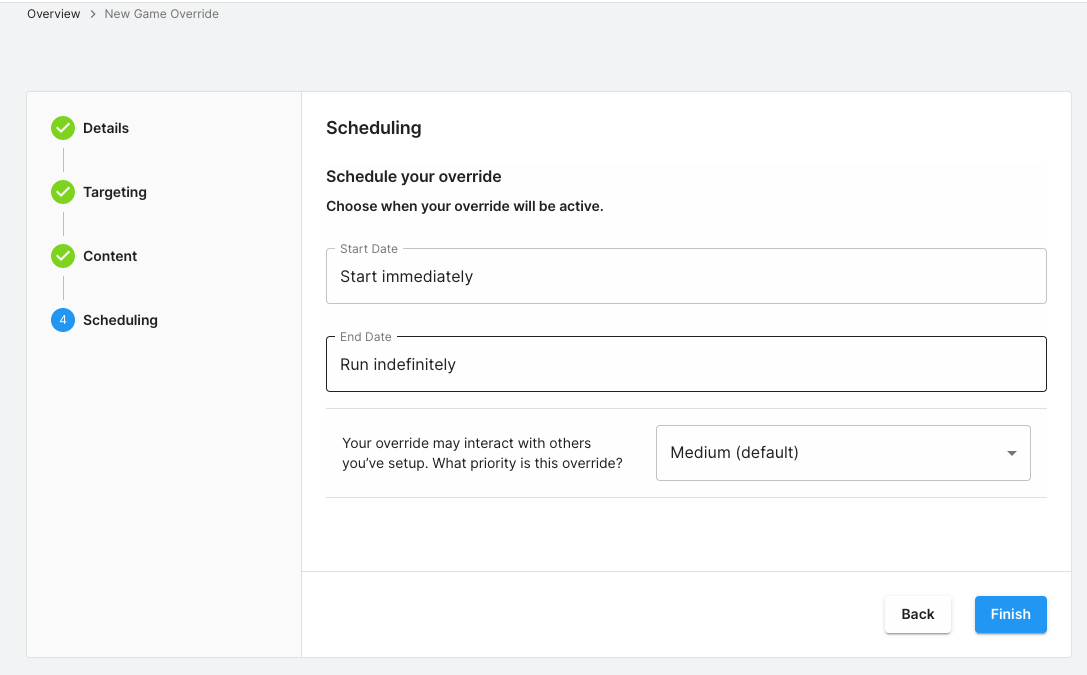 选择 Next(下一步) 并设置您的安排。如果未设置“End Date”(结束日期),覆盖会一直持续运行。