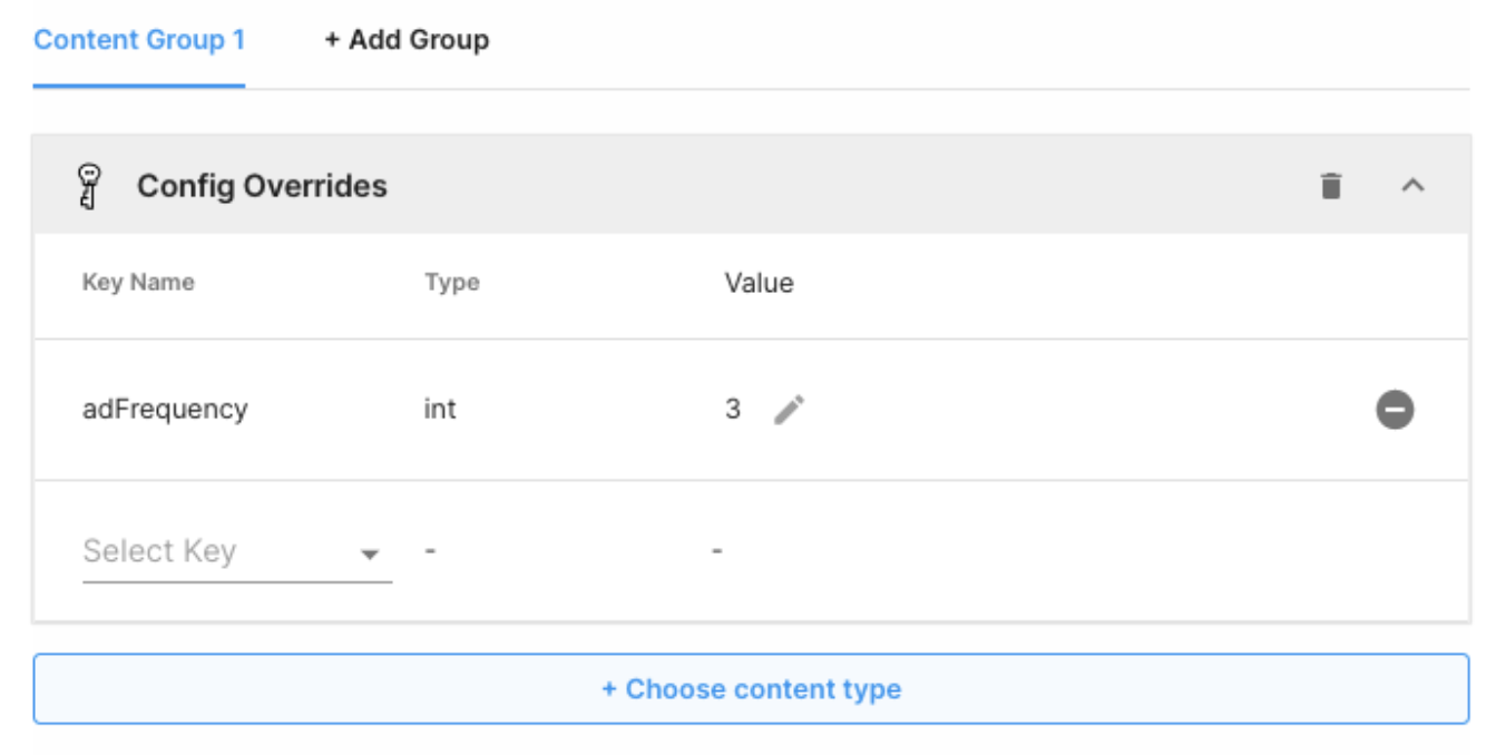 - 单击 Choose Content Type(选择内容类型),再选择 Config Overrides(配置覆盖),然后单击 Done(完成)。