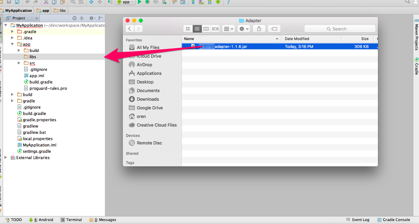- Add the adapter's Maven name to your build.gradle script of your app module.